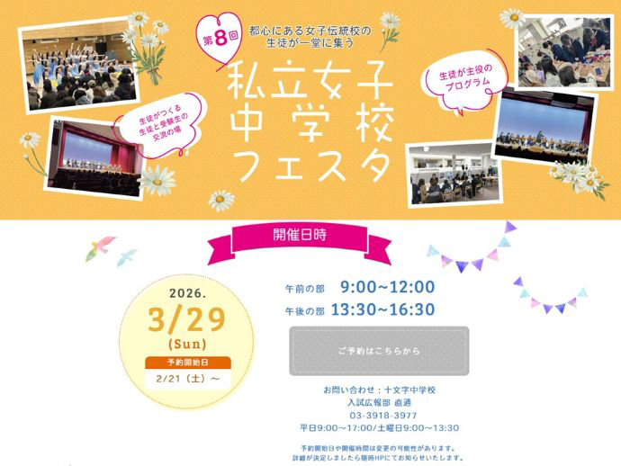 【受験生イベント】3月29日(日)実施 私立女子中学校フェスタに参加します!