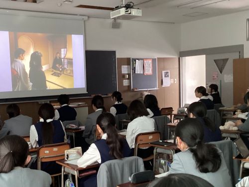 講演会後、次の時間は教室にてお茶会作法に関するDVDを視聴しました。
