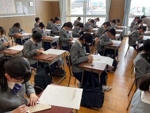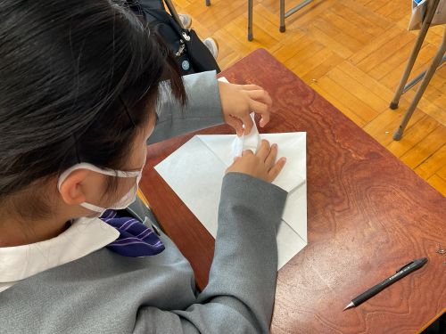 中学1年生は、11月に跡見流リベラルアーツの授業「折形礼法」の中で季節の行事である「節分」にちなんだ作品作りに挑戦しました。