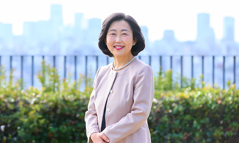 昨年で学園創立150周年、女子大学創立60周年を迎えました。私は本学初の女性学長として、その伝統を大切に受け継ぎながらも、《学生ファースト》の目線で、履修面の課題克服や就活早期化への対応、クラブ活動の充実をはじめ刺激あふれる学生生活の創出などの新しい改革を、早急に確実に進めて参ります。