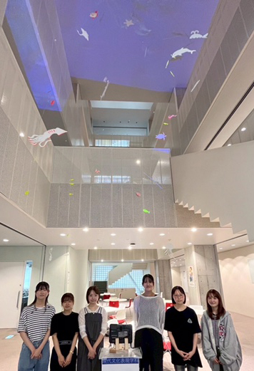 【現代文化表現学科】山本教授のゼミ生が文京校舎の吹き抜けを「夏」にデザイン