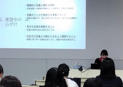 実習成果発表会では,学生一人ひとりが,実習中に心がけたこと,出会った困難,そしてそれにどう向き合ったのかを振り返り,自身の言葉で発表しました。