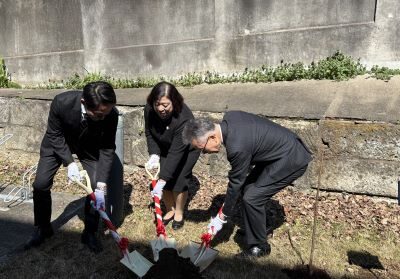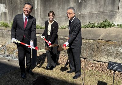 本学新座キャンパスで見つかった新種の桜『アトミザクラ』を本学提携学生寮「メゾン音羽」を運営する株式会社共立メンテナンスに寄贈し、3月11日に同社主催により植樹式が執り行われました。
