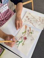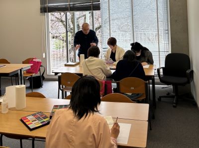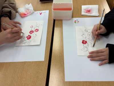 ■人文学科「日本画画材で桜の花の彩色をしてみよう」