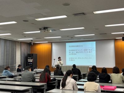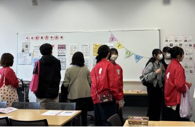 開催教室の手前では人文学科の学生がデモンストレーション。