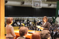 文学部172名、マネジメント学部84名、観光コミュニティ学部70名、心理学部103名の学部新入生に加え、編入学生および大学院人文科学研究科修士課程入学者18名、計447名の新入生が入学。式典は厳かな雰囲気の中で執り行われ、新入生はこれから始まる大学生活への期待と緊張を胸に、新たな一歩を踏み出しました。