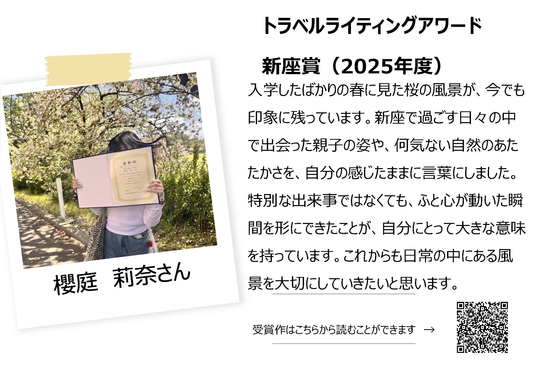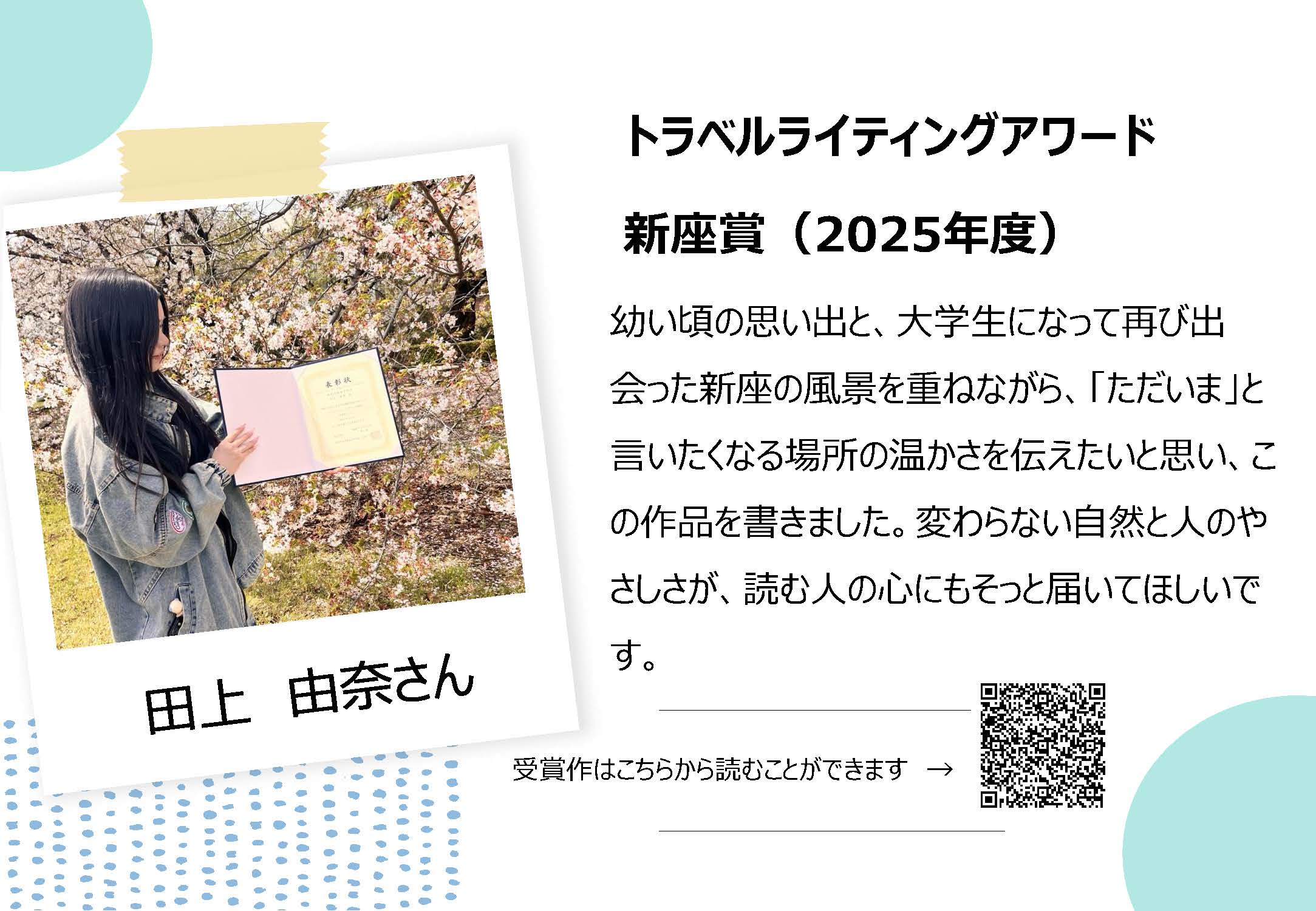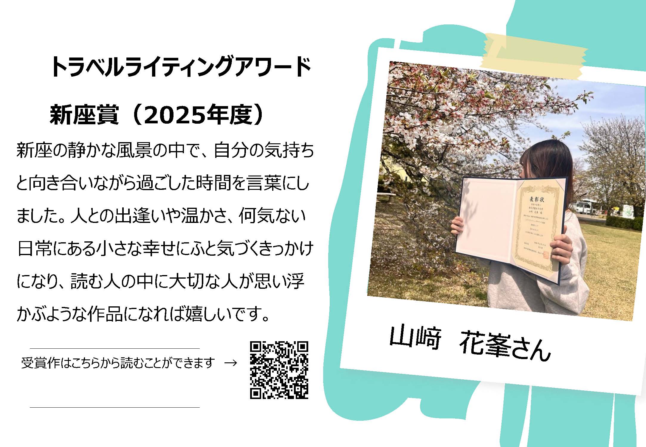 【観光デザイン学科】トラベルライティングアワード新座賞を受賞