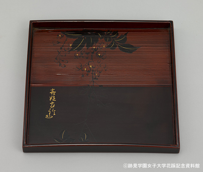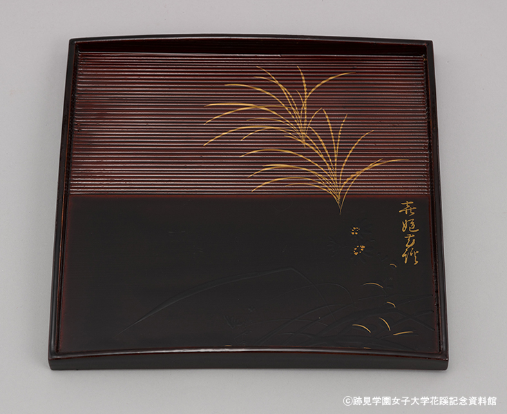 跡見花蹊《黒漆塗麦蒔絵方盆》