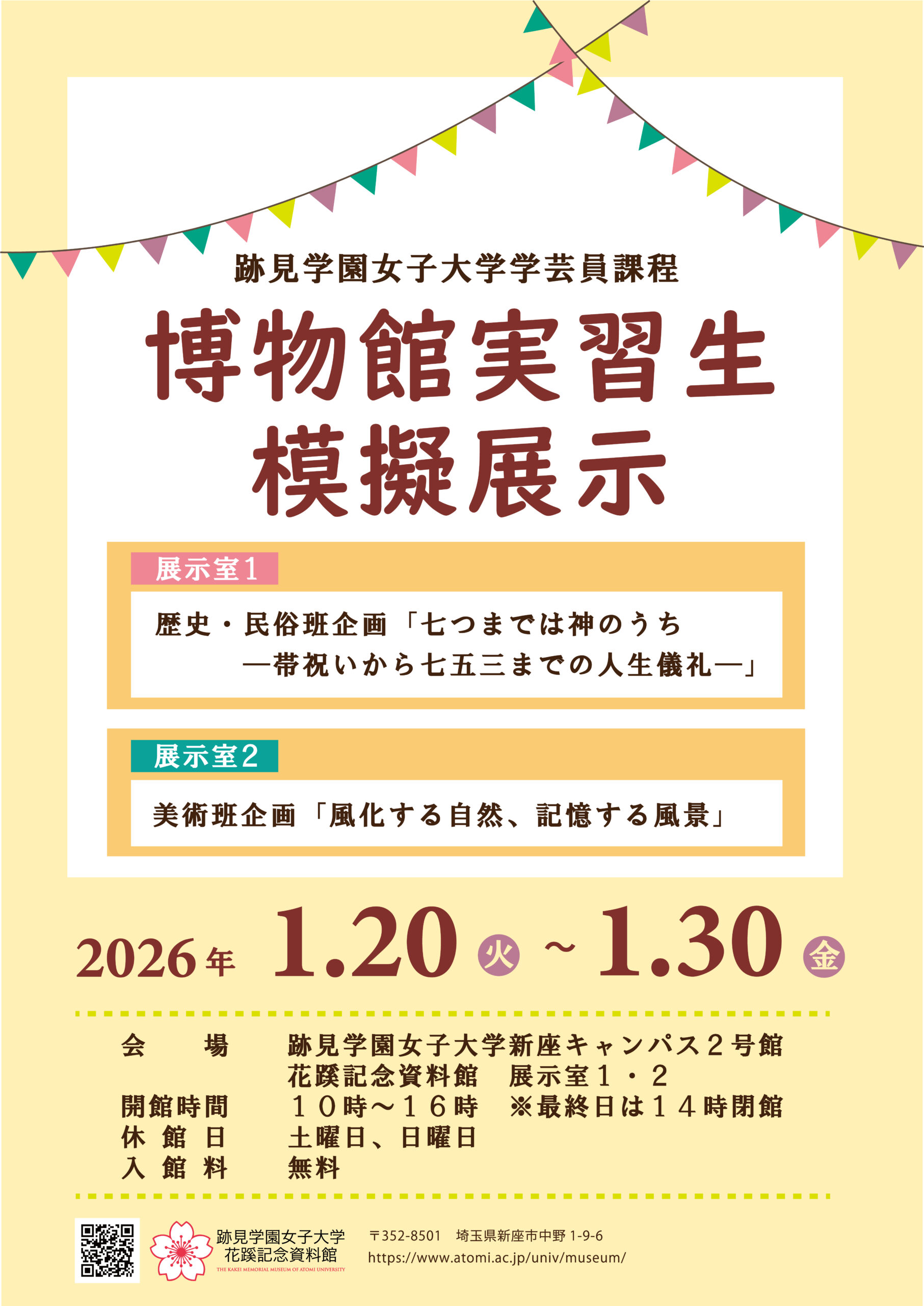 2026年1月20日(火)より1月30日(金)まで、学芸員課程企画「博物館実習生模擬展示」を開催いたします。