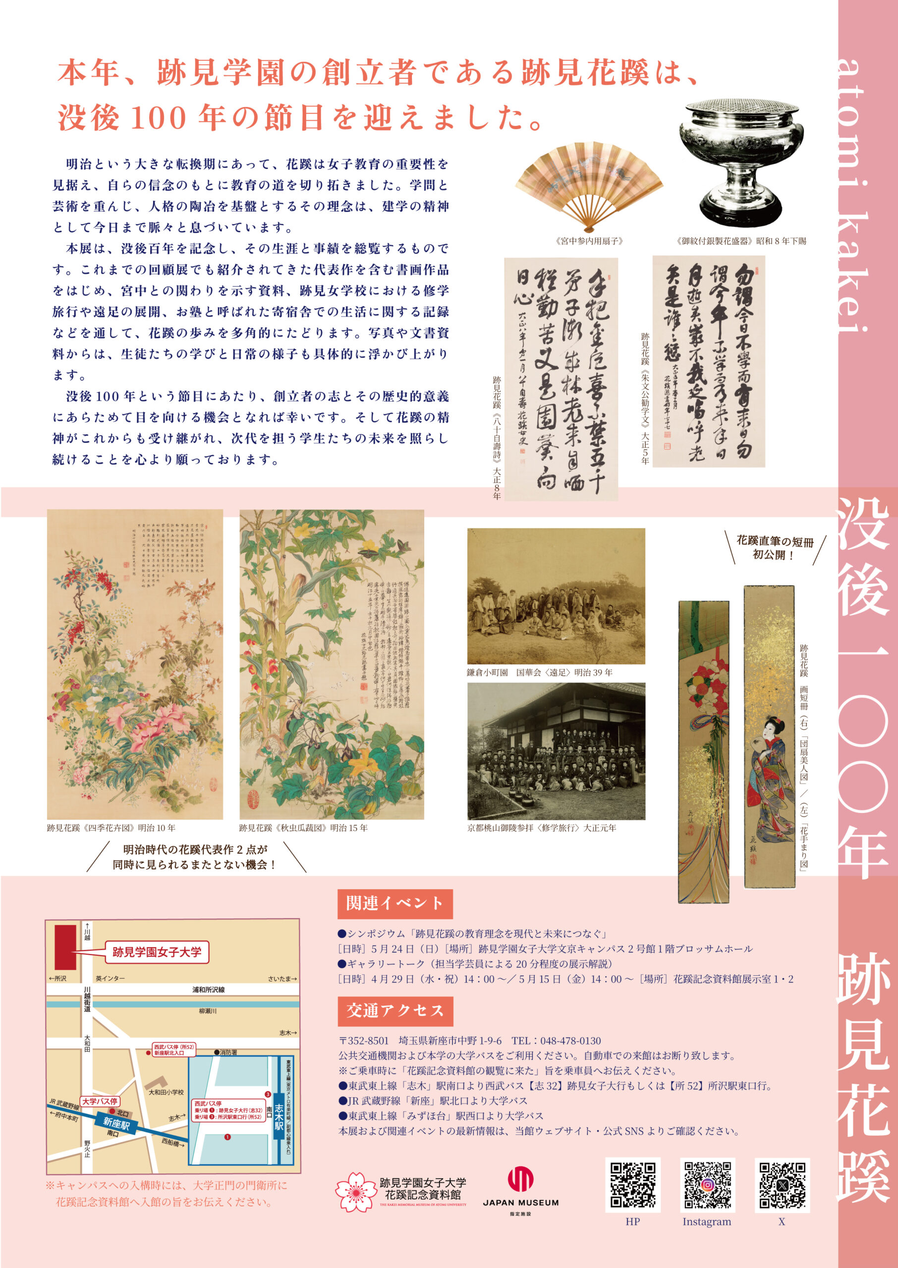2026年3月23日(月)より5月20日(水)まで、企画展「没後100年 跡見花蹊」を開催いたします。