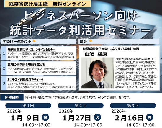 マネジメント学科の山澤成康教授が総務省統計局主催「ビジネスパーソン向け統計データ利活用セミナー 」の