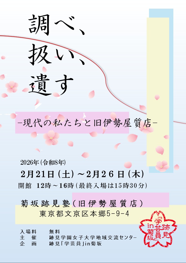 このたび、学生団体【跡見「学芸員」in 菊坂】による企画展を開催します。