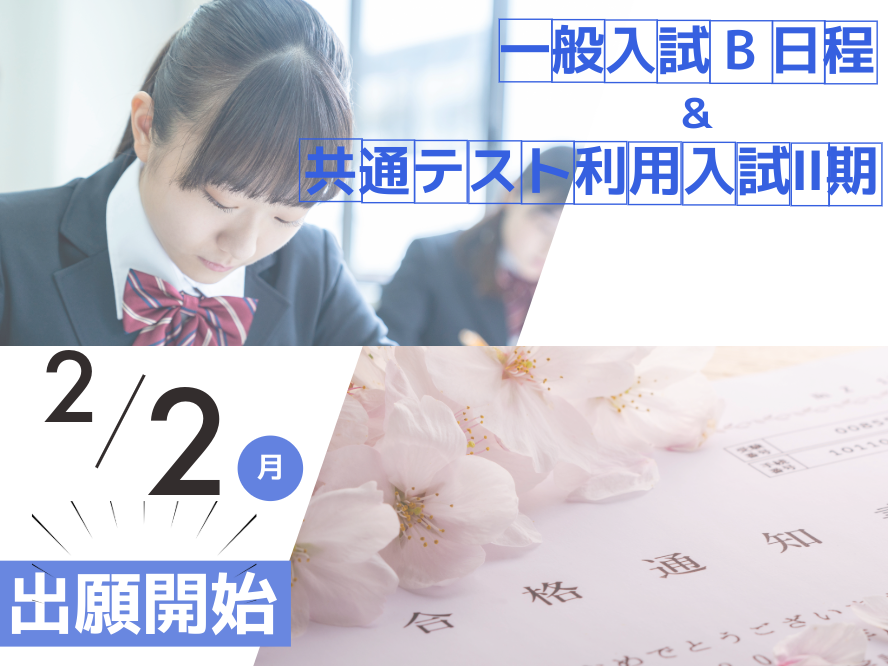 一般入試B日程・大学入学共通テスト利用入試Ⅱ期の出願が2/2(月)より開始されます。