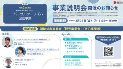 観光デザイン学科で温泉学を担当する山崎まゆみ兼任講師が、令和8年度実施「観光地・観光産業におけるユニバーサルツーリズム促進事業」事業説明会のパネリストとして登壇しました。