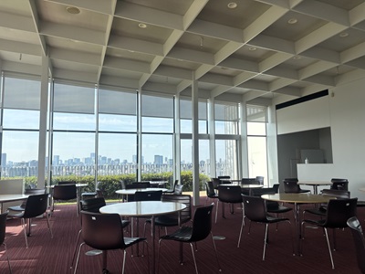 こちらはガラス張りのため東京の絶景を見ながら勉強することができます。勉強で行き詰まった時などに景色を見て気分転換を行っています!!